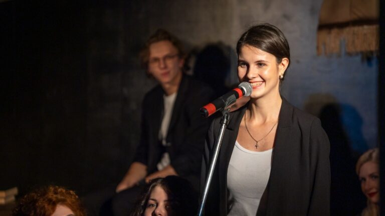 Музыкально-поэтическую программу вечера подготовят артисты стажёрской группы, выпускники пятого набора мастерской н. а. России Семёна Спивака.В их исполнении прозвучат романсы, песни и стихотворения современных и советских авторов, а также стихи собственного сочинения.