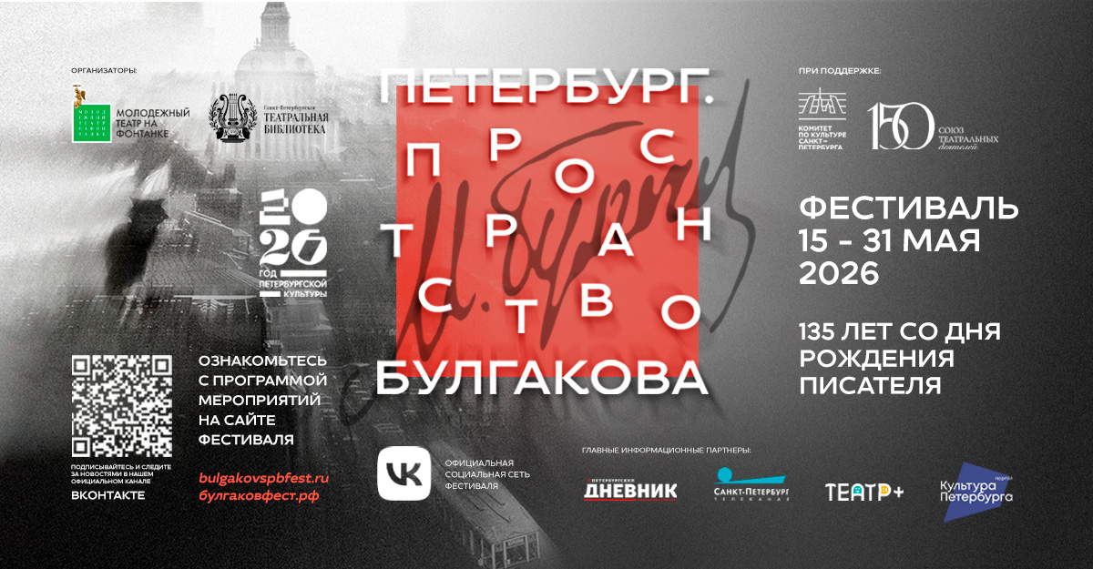 15 мая, в день рождения писателя, состоится торжественное открытие фестиваля «Петербург. Пространство Булгакова». Зрителей ждет музыкально-развлекательная программа в Измайловском саду и театрализованное представление на Большой сцене Молодежного, созданное артистами театра под руководством режиссера Наталии Третьяковой.